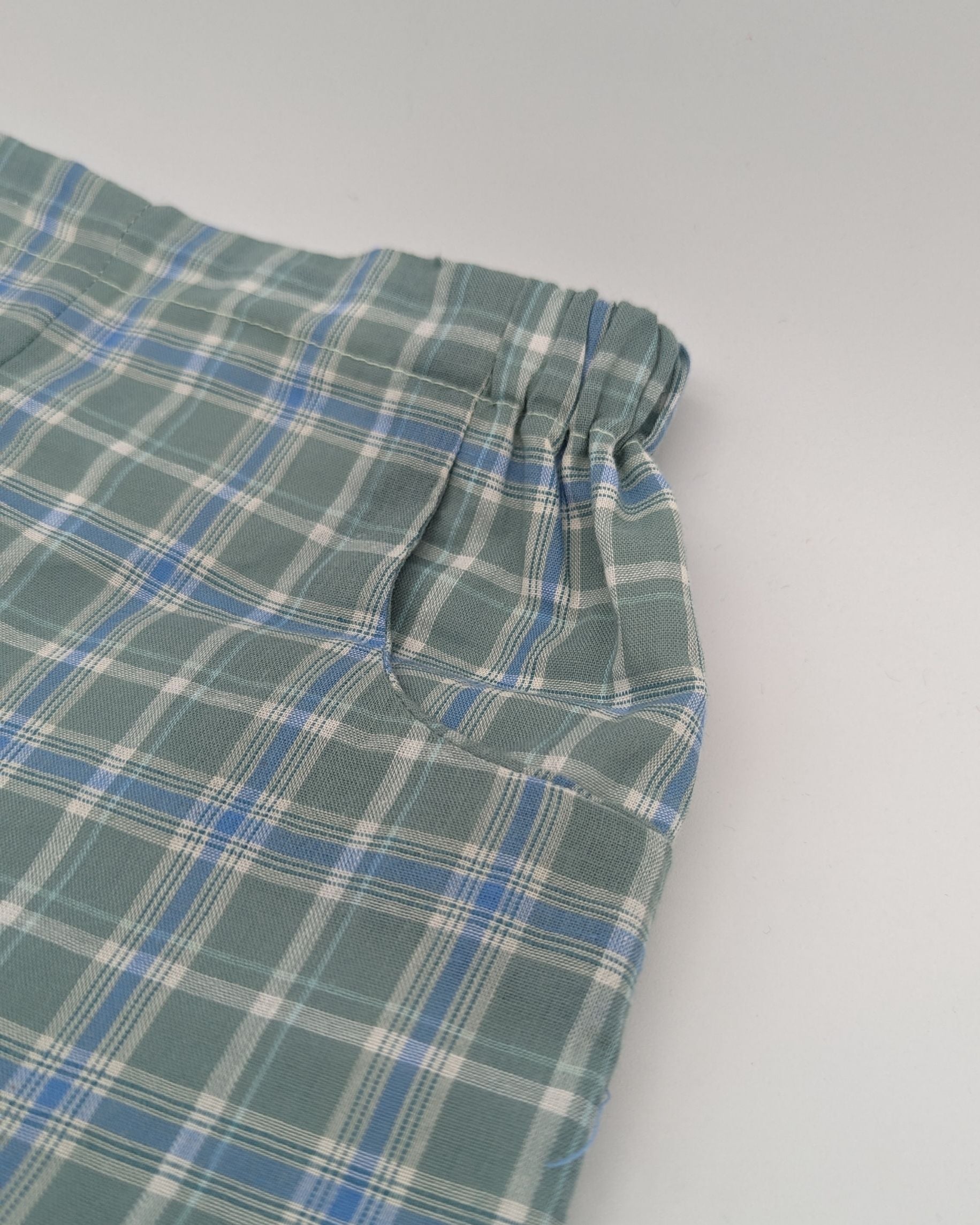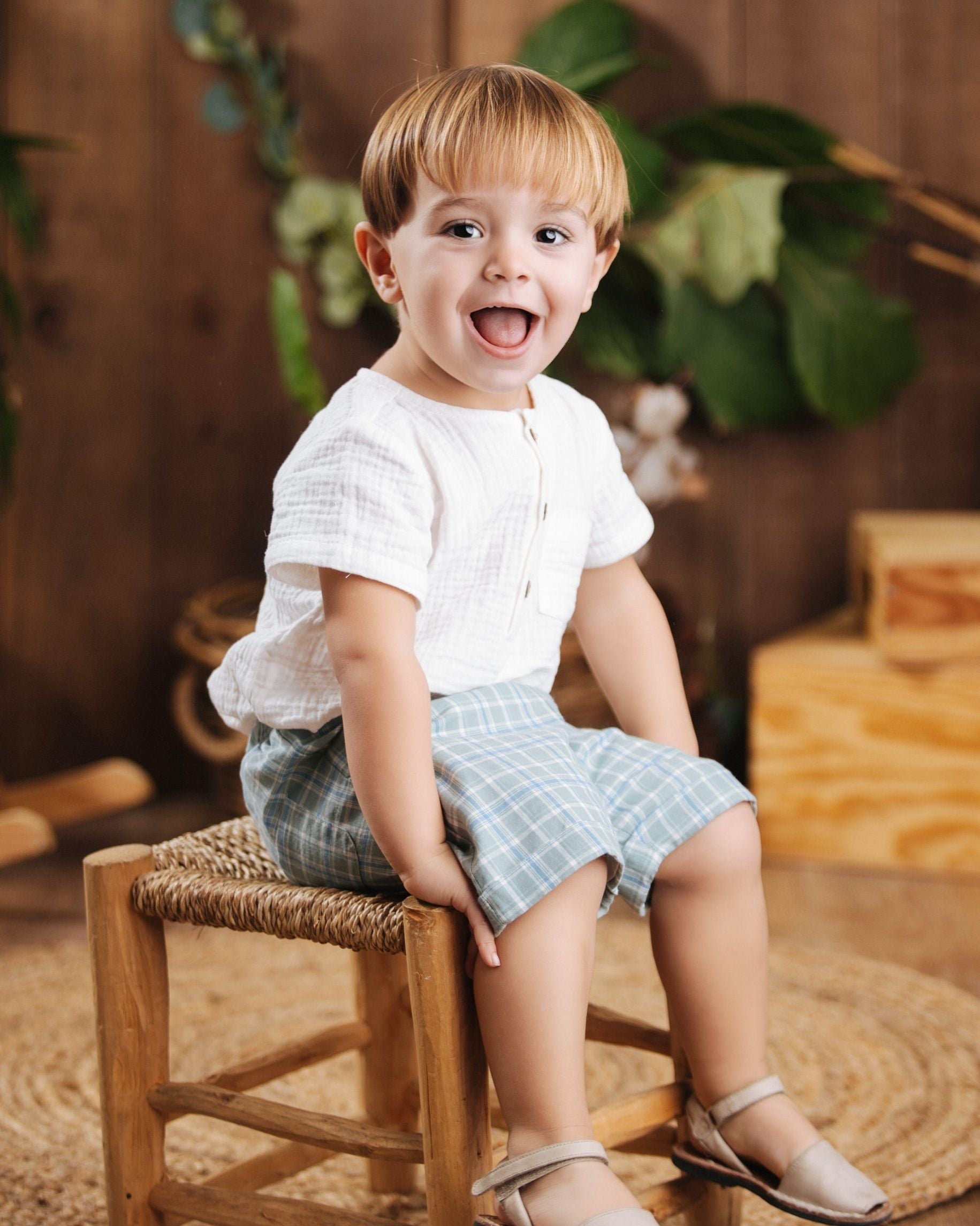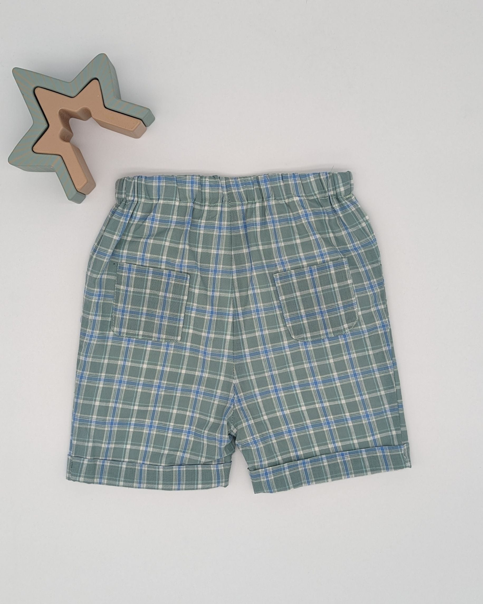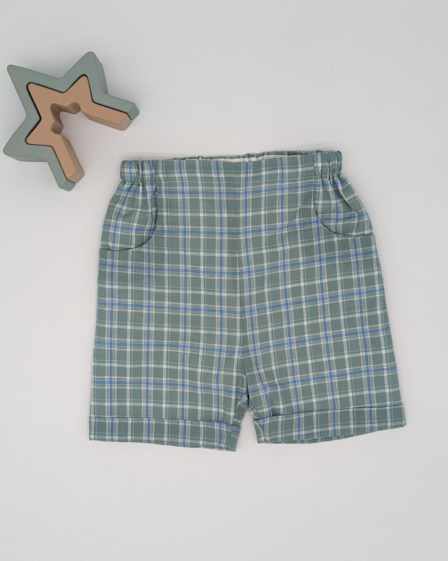 La combinación de colores es preciosa: azul del cielo y verde como la hierba. Confeccionada en 100% algodón orgánico, esta bermuda es resistente y fresca, ideal para mantenerlo cómodo mientras juega. Como toda fibra natural procedente de cultivo orgánico, no contiene ninguna sustancia tóxica que pueda dañar la piel de tu pequeño.