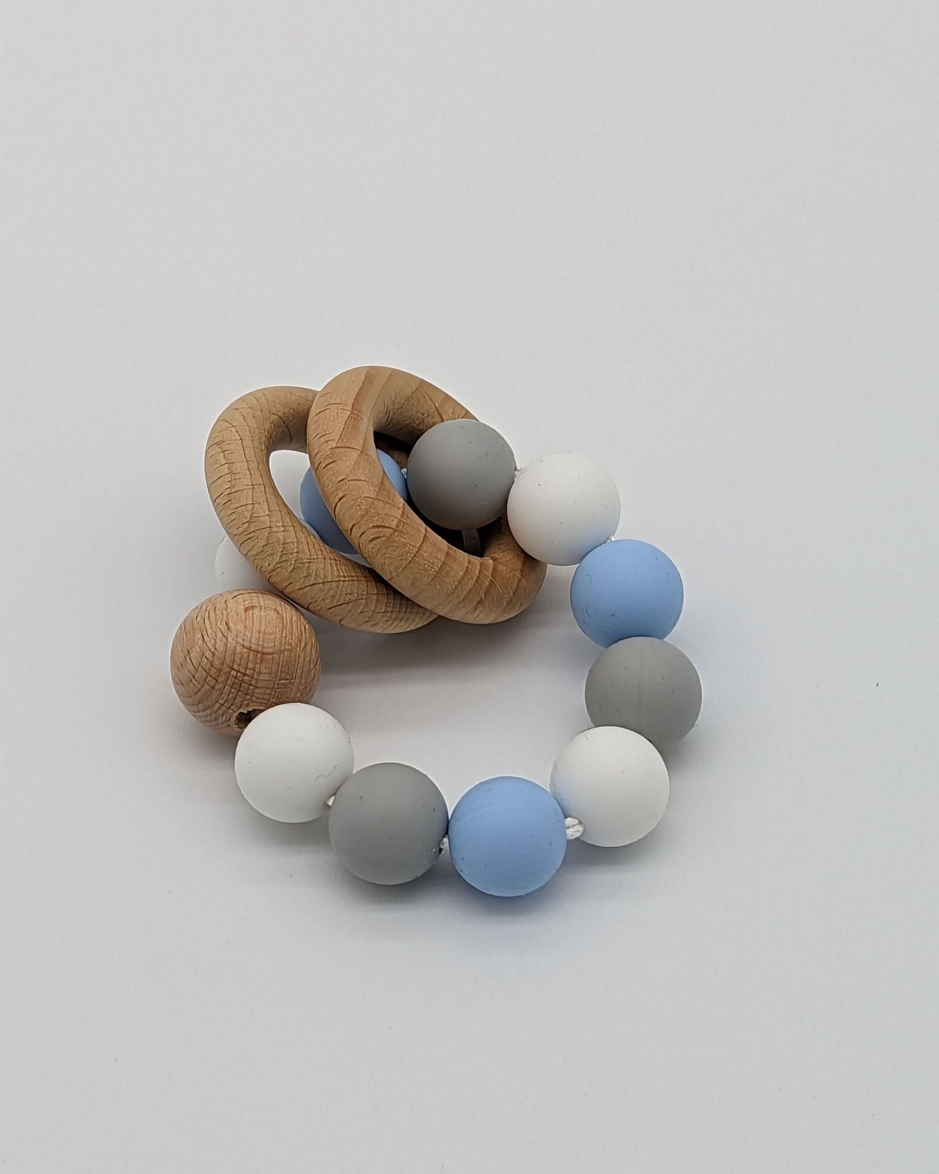 Los aros de madera hacen un ruido suave y agradable. Las bolas son ideales para morder.