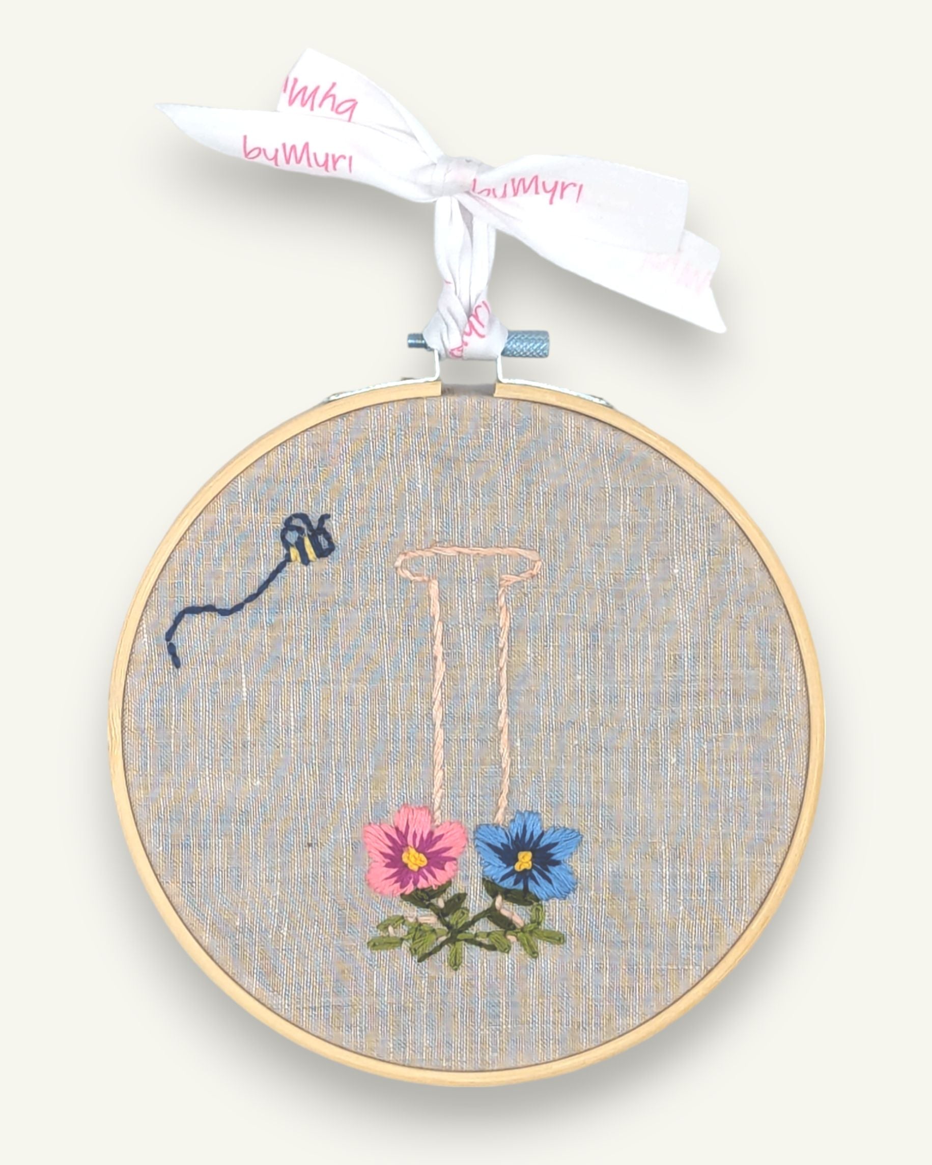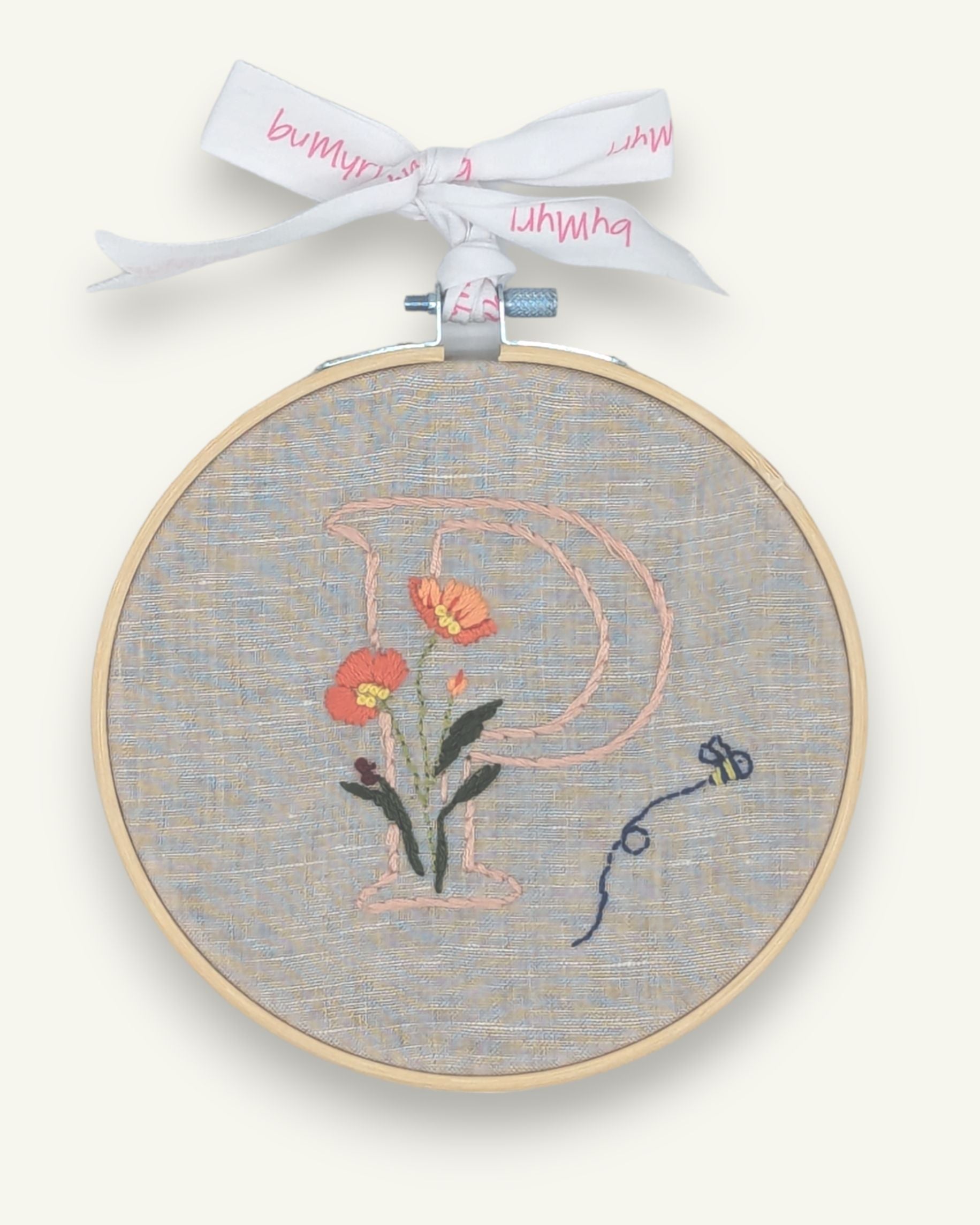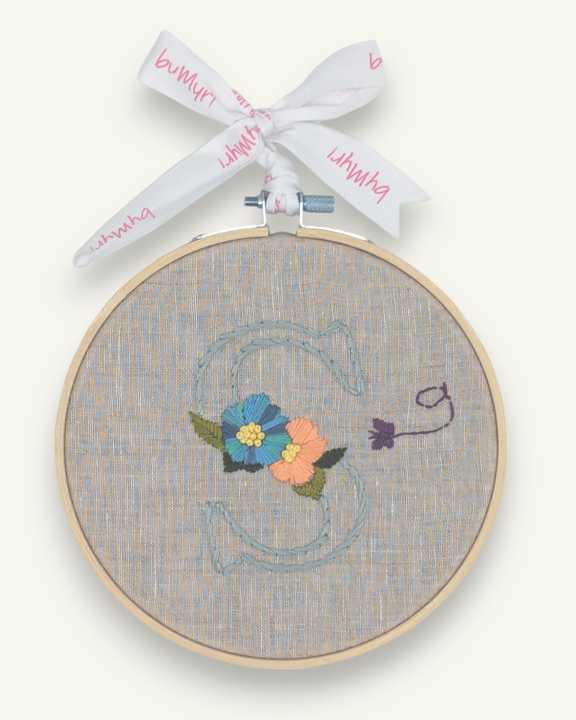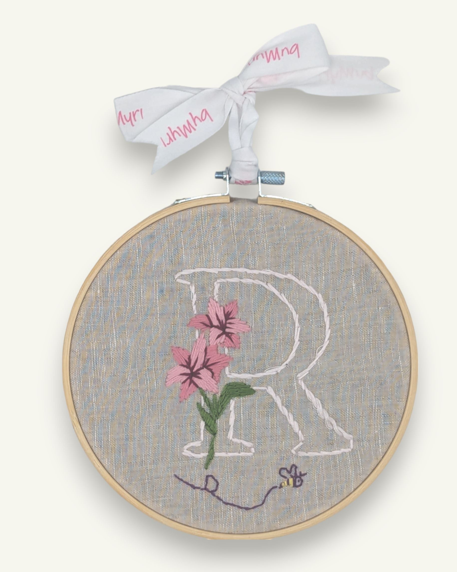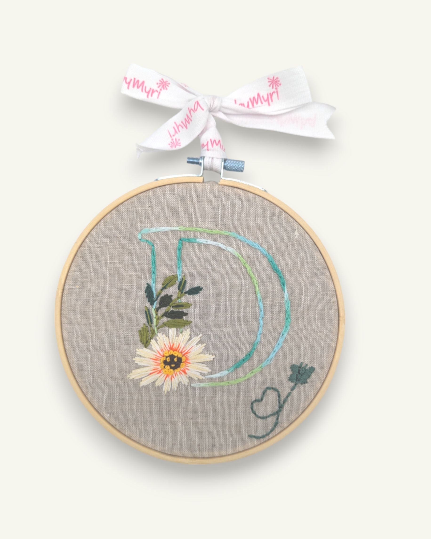 Este cuadrito con la inicial bordada de tu bébé quedará precioso en su cuarto.