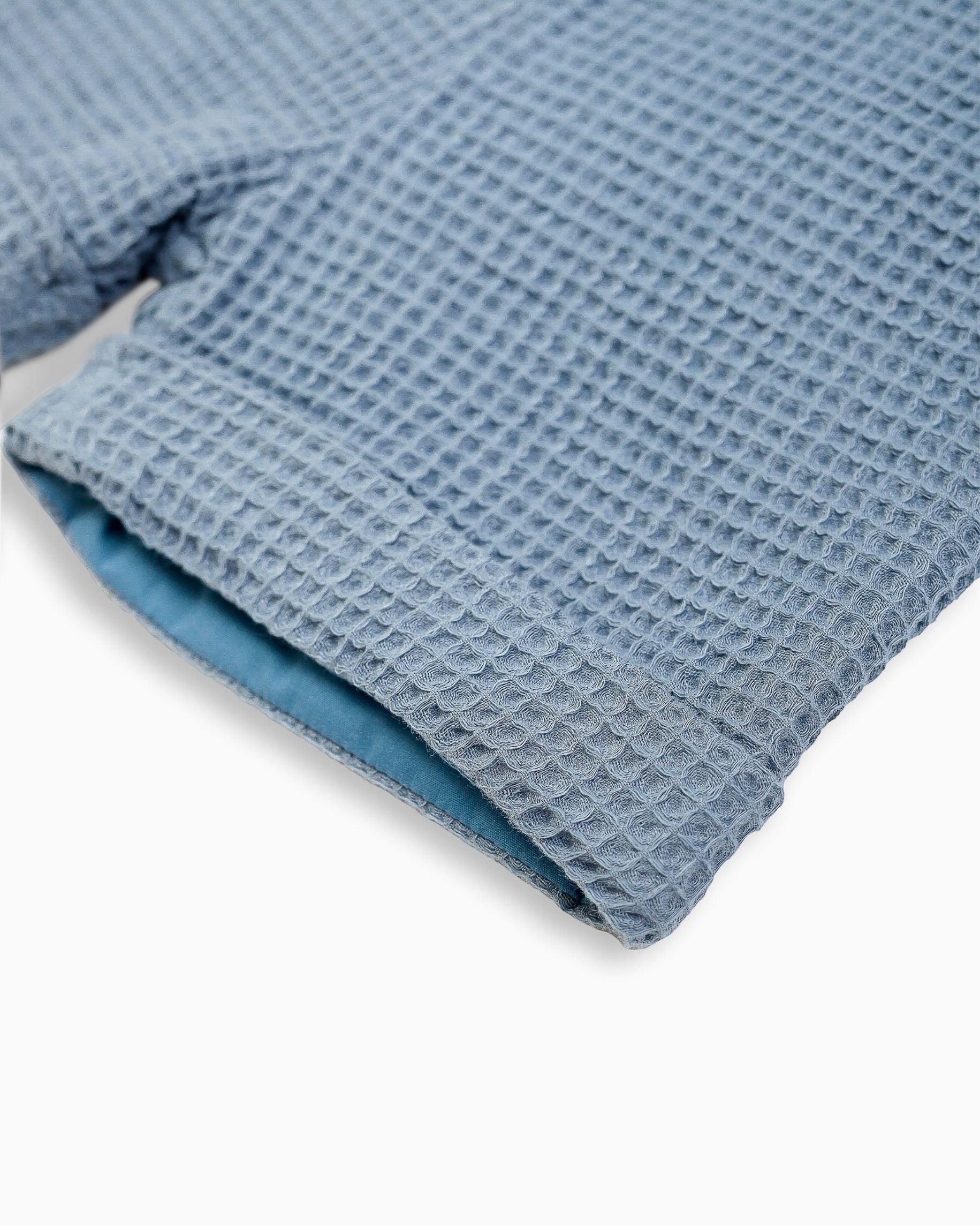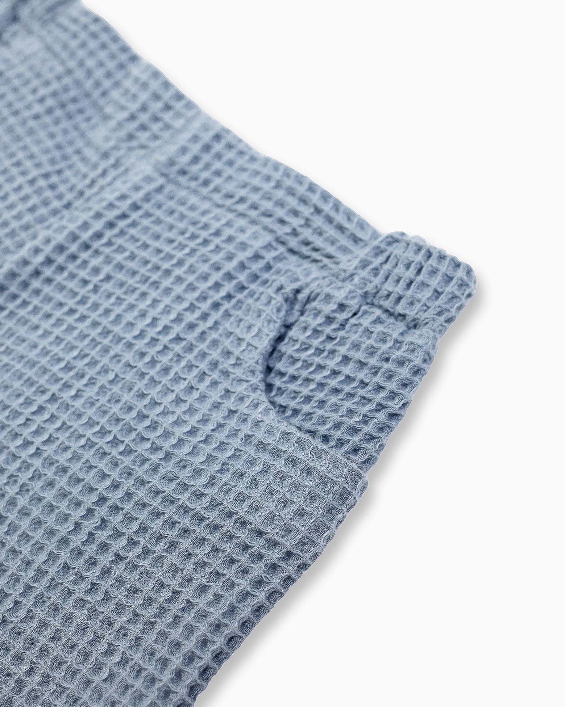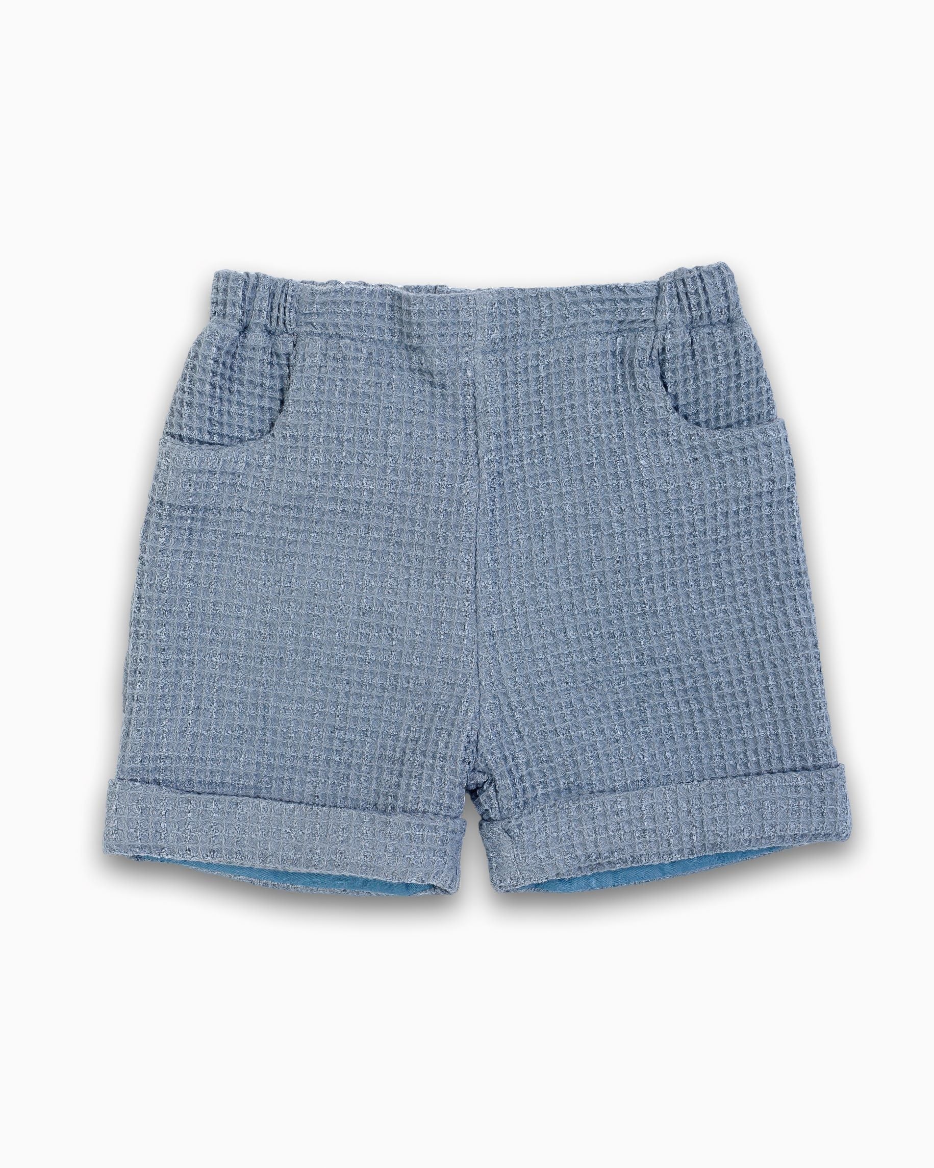 Es ideal para llevar con con cualquier camisa, polo o camiseta blanco, aunque también queda preciosa con pequeños estampados. La tela tiene un pequeño relieve tipo “gofre” y es de un azul que recuerda los matices oscuros pero siempre luminosos del Mar Cantábrico. Tu niño estará fresco, cómodo y guapísimo, ¿se puede pedir más? ¡Pues sí! Recuerda que el algodón es transpirable, termorregulador e hipoalergénico, perfecto para proteger la piel de tu pequeño marinero.