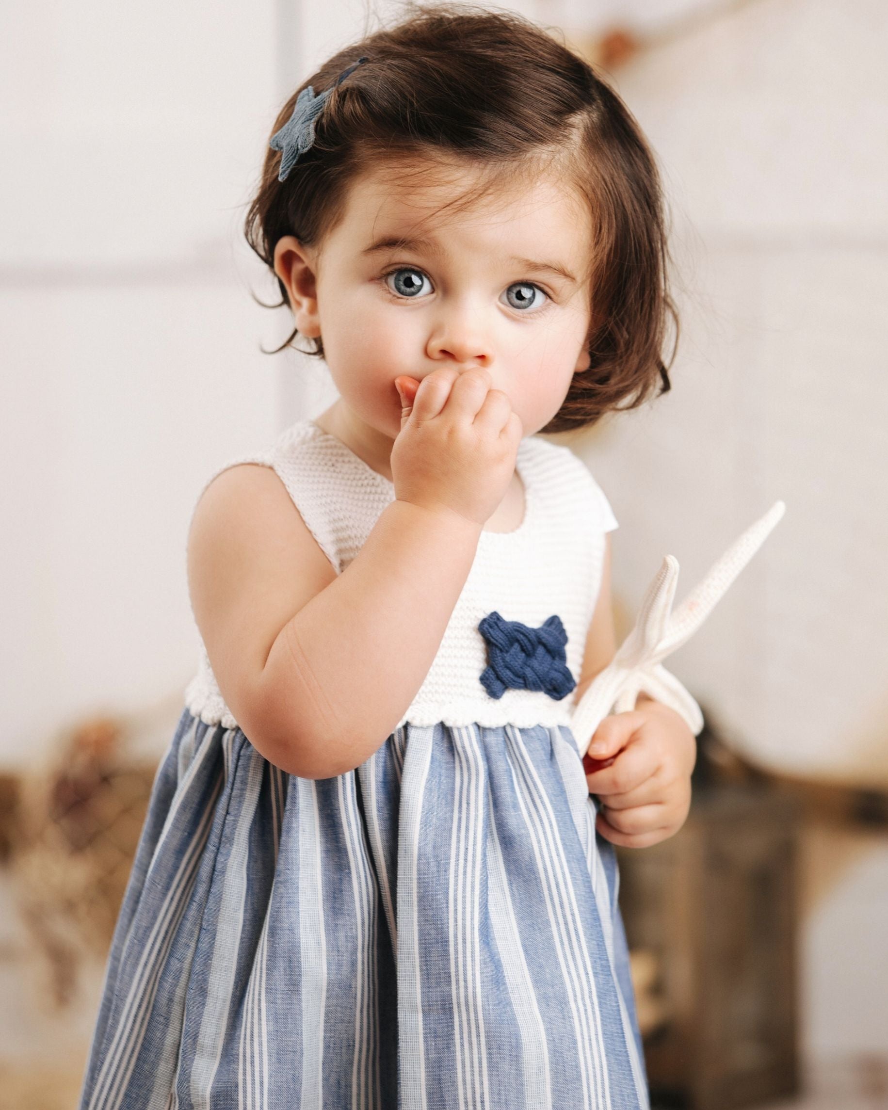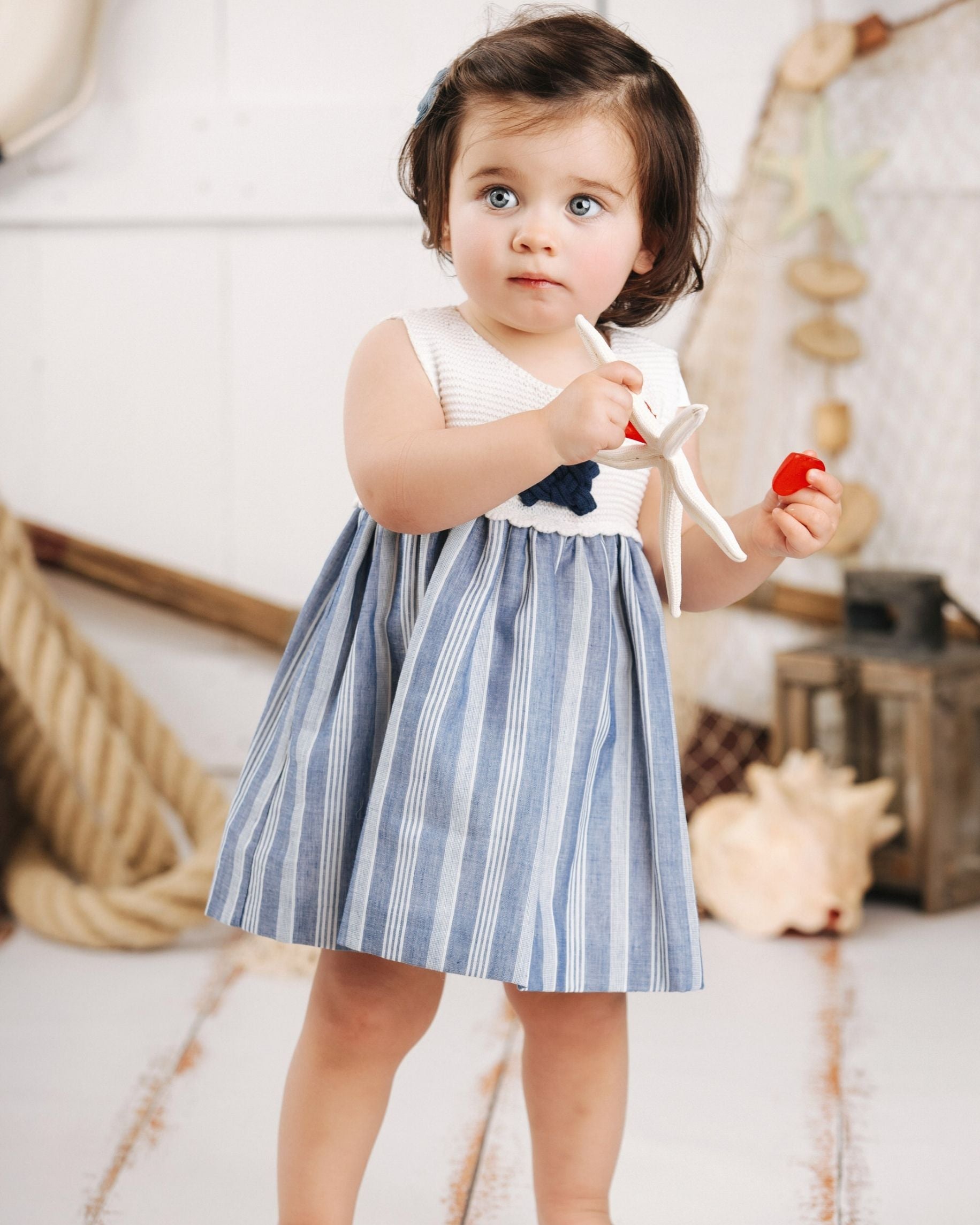 Cualquier plan es perfecto para este vestidito, que lleva toda la magia del Mar Cantábrico. Tu niña estará cómoda y fresca durante todo el día, además de estar preciosa. Con su nudo artesanal en el pecho se sentirá como una pequeña marinera en busca de su primera aventura marina.